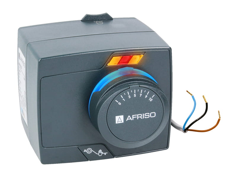 Dwustronna skala na pokrętle określa stopień otwarcia zaworu. Duże diody LED wskazują kierunek obrotu zaworu oraz działanie wyłącznika pomocniczego. Ręczne obracanie zaworu jest możliwe dzięki zastosowaniu prostego w użyciu sprzęgła w formie przycisku. Siłowniki dostarczane są z przewodem elektrycznym o długości 2 m z żyłami wyraźnie oznaczonymi kolorami. Przewód połączony jest z siłownikiem poprzez wtyczkę, zabezpieczoną pokrywką.
